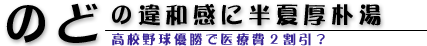 高校野球で松山商業が27年ぶりに優勝しました。最近は初戦敗退が続き、期待度が低かっただけに、関係者の興奮度もすさまじいようです。商店街は割引セールが始まりました。私も、優勝を知った瞬間、医療費も2割引にしようかと考えたものです。今の医療制度は、談合によって医療費を統一価格にしているようなもので、市場経済の原理に反するような気がします。今からは健康保険制度もどんどん変化してゆきますので、ゆくゆくは自由診療の部分が増え、値引き合戦がはじまるのかもしれません。 高校野球が終わると秋も足早にやってきます。朝夕の気温の変化が大きく、のどをいためる人も増えてきます。先日ものどの異和感を訴える59歳の女性が来院されました。 「鼻の奥とのどの上がおかしいのです。耳も詰まった感じがします。もう2カ月も」 このように訴える人は必ず、自分はガンではないかと疑っています。鼻の中からのどの下までファイバースコープで入念に観察し、モニターを通して見てもらい、 「単なる炎症ですよ」 と説明しただけで、たいていの人はほっとして症状が改善します。 しかし、この婦人のように炎症の強い人は、十分な処置が必要です。のど(上咽頭から中咽頭)の処置を行ったあと耳に耳管通気療法を施しました。また、漢方薬の半夏厚朴湯を処方しました。治療を2週間つづけてやっと異和感が取れてきましたが、今度は「口の中が苦くなった」とのことで、半夏厚朴湯に代えて柴朴湯を処方しました。一週間後にはこの症状も取れ、ほとんど治ってしまいました。 のどの炎症はこのように、治るまでに時間のかかることが多いようです。鼻の奥とのどの上は、鼻を通して入ってきた細菌やウイルスのたまり場となっていますので、治りにくく、また治るまで時間がかかります。慌てず、じっくり治療するのがコツです。 半夏厚朴湯は、のどに何かつまっている感じで、気がふさがっている時に有効な薬です。教科書的には、気分がふさいで、咽喉、食道部に異和感があり、ときに動悸、めまい、吐気などを伴うときに用います。のどの炎症が強いと、これに小柴胡湯を合わせた柴朴湯がよく効きます。 秋風が吹くと、夏バテで休んでいたウイルスや細菌が元気をとり戻して、鼻からのどを襲います。のどがおかしくなったら、耳鼻科で鼻を洗ってもらったり、のどに薬を塗ってもらって下さい。この基本的処置だけで、かなり症状は改善してゆきます。 (1996年9月)