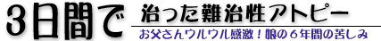 「先生、ありがとうございました。娘はすっかり良くなりました。たった3日で治ったのです。今まで6年間毎日毎日地獄のような苦しみでしたが、3日間先生の薬を使っただけでほとんど良くなりました。6年間の苦しみは何だったのか。娘も思春期になり、毎日毎日気になっていたのです」