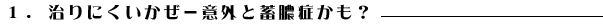 A.かぜをひいた後で、鼻水、咳がいつまでも続くことがあります。2週間以上も続けば、たいていは、蓄膿症(慢性副鼻腔炎)になっていることが多いようです。ドロッとした鼻水と鼻づまり、ゼロゼロとした咳や濃い色の痰が出ることが特徴です。特に1歳児から小学校低学年までに多くみられますが、成人でもみられます。こうした咳を喘息の1つと説明されることもありますが、本当は蓄膿症の濃い鼻水がのどに落ちてとどまり、のど元でゼロゼロと音を出している場合がほとんどです。耳と鼻は耳管でつながっているため、鼻水が長引くと、感染が鼻から耳に移り、中耳炎(急性化膿性中耳炎、滲出性中耳炎)となることも多く見受けられます。耳を気にする、聞こえが悪い、耳に手を持っていくなどの症状があれば、中耳炎を疑ってください。