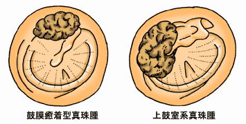「時々耳が痛くなるのですが」 と、3年前、50歳の女性が来院されました。鼓膜を診ると、鼓膜の上の方(上鼓室)に、白く汚れた塊があり、まわりがじくじくしています。この塊をていねいに取り除くと、小さい袋状の穴が見えてきました。表面の一部は真珠貝の内面のように輝きをもっています。これはいわゆる真珠腫性中耳炎です。どんどん進行すると脳や顔面神経にも障害を起こすため、頭痛、めまい、顔面神経麻痺、骨髄炎などの症状が出てきます。そのため、いずれ手術を必要とします。真珠腫というと、きれいな真珠を思い浮かべますが、丸い真珠に出合うことはまずまれです。たいていは汚い耳垢の塊で発見されます。真珠は2枚貝の内に核を入れて球状の真珠を作るのですが、中耳炎は、1枚貝(鼓膜)の上に乗っているため、きれいな球状を作ることはまずありません。それでも真珠腫というのが不思議です。 真珠腫ができる原因は、まだはっきりとはわかっていません。耳管の機能が悪かったり、滲出性中耳炎などで中耳腔の陰圧状態が続くと、鼓膜の一部が中耳の方に引き込まれて袋を作り、その中にケラチン(死んだ上皮細胞)がたまり、真珠腫になると教科書に書かれています。 このご婦人の真珠腫の塊を取ったあとの鼓膜の表面には、よく見ると小さい肉の塊(肉芽)があります。そして、そこから耳漏が出ているのです。真珠腫性中耳炎の原因物質を見た思いがしました。ていねいにこの肉芽を取り、残った肉芽は薬液で除去しました。1回では治らないため、何度も同じ処置を行い、約2週間でやっと肉芽を取り去りました。その後も定期的に肉芽を作らないよう処置を行っています。今は、真珠腫も発生せず、手術を勧める必要もなく、良好な状態を保っています。 病原菌が鼓膜にくっつくと、病原菌に対して手が伸びるように血管が伸び、血液中のマクロファージが病原菌を食べていきます。病原菌が強いと、血液を逆に栄養として育っていき肉芽が作られます。周囲の組織をこわしながらゆっくり大きく成長したものが真珠腫です。真珠腫がへばりついた鼓膜やまわりの組織は、真珠腫からの破壊から身を守るため、殻を厚くしていきます。これが真珠貝の内面のような輝きを作っているのです。 早い段階でこの病的肉芽を除去できれば、真珠腫の進行を止めることができます。定期的な耳の処置、治療が何よりも大切です。 ![]() (2000年3月)
