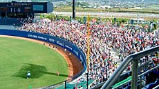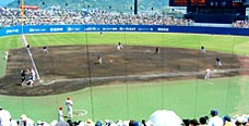 ネット裏の席を取っていましたが、直射日光を受けて熱中症になりそうでしたので、日陰になっている最上階の空席に移動しました。風が吹きぬけ、涼しく試合を見る事ができました。