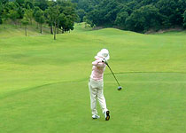 暑い中でのゴルフは大変です。吸汗速乾性のウエアが最近よく出ています。これを身に着けると肌にまとわりつかず快適です。