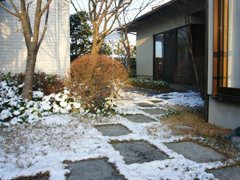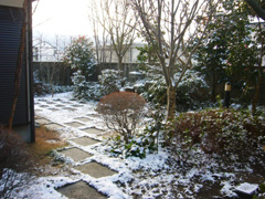 2月3日の朝、目を覚ますと庭は積雪で真っ白です。