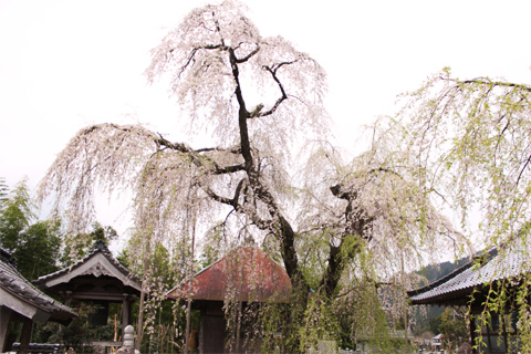 お寺の境内には樹齢120年ほどの形のいい枝垂れ桜がありました。